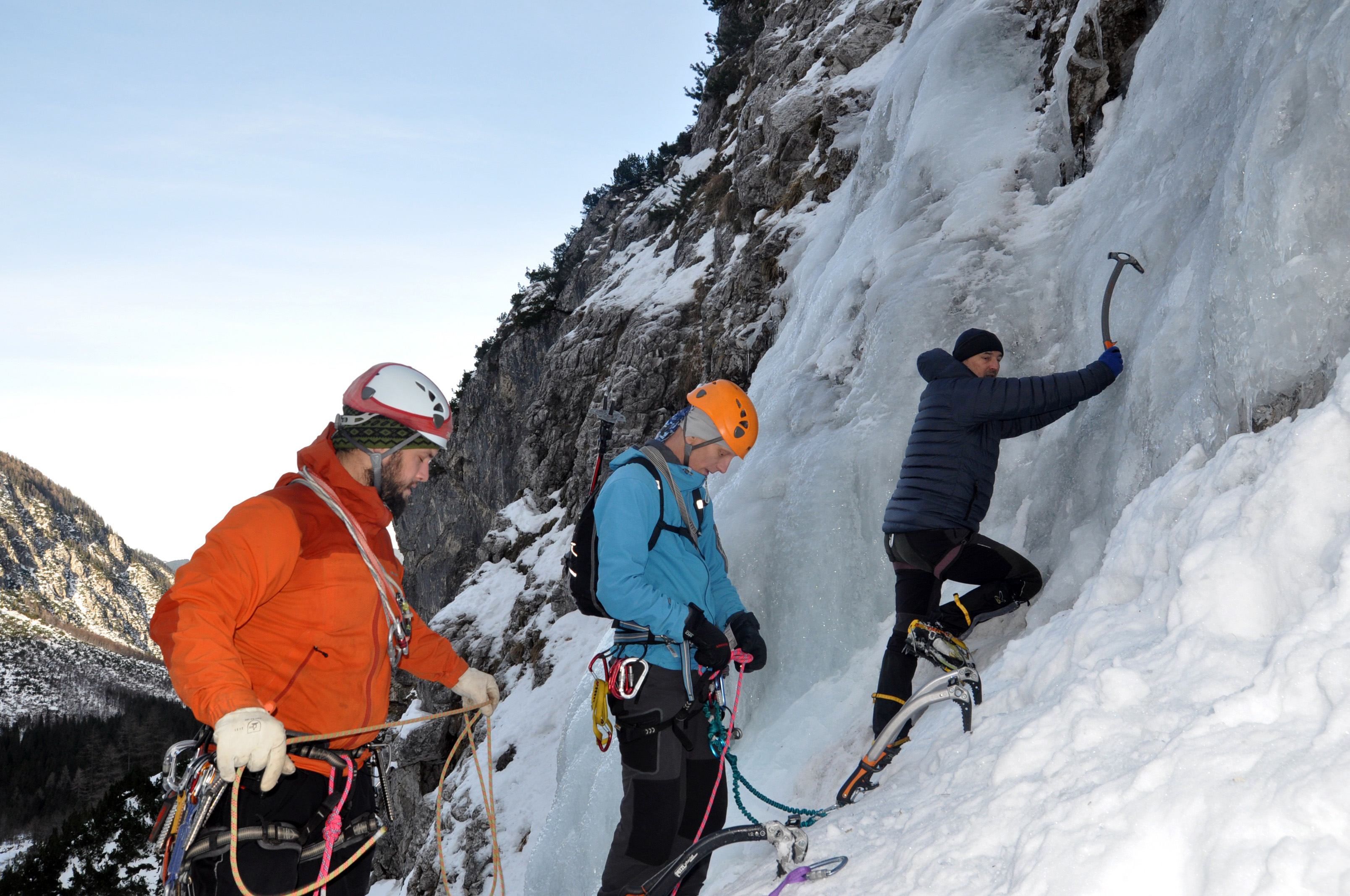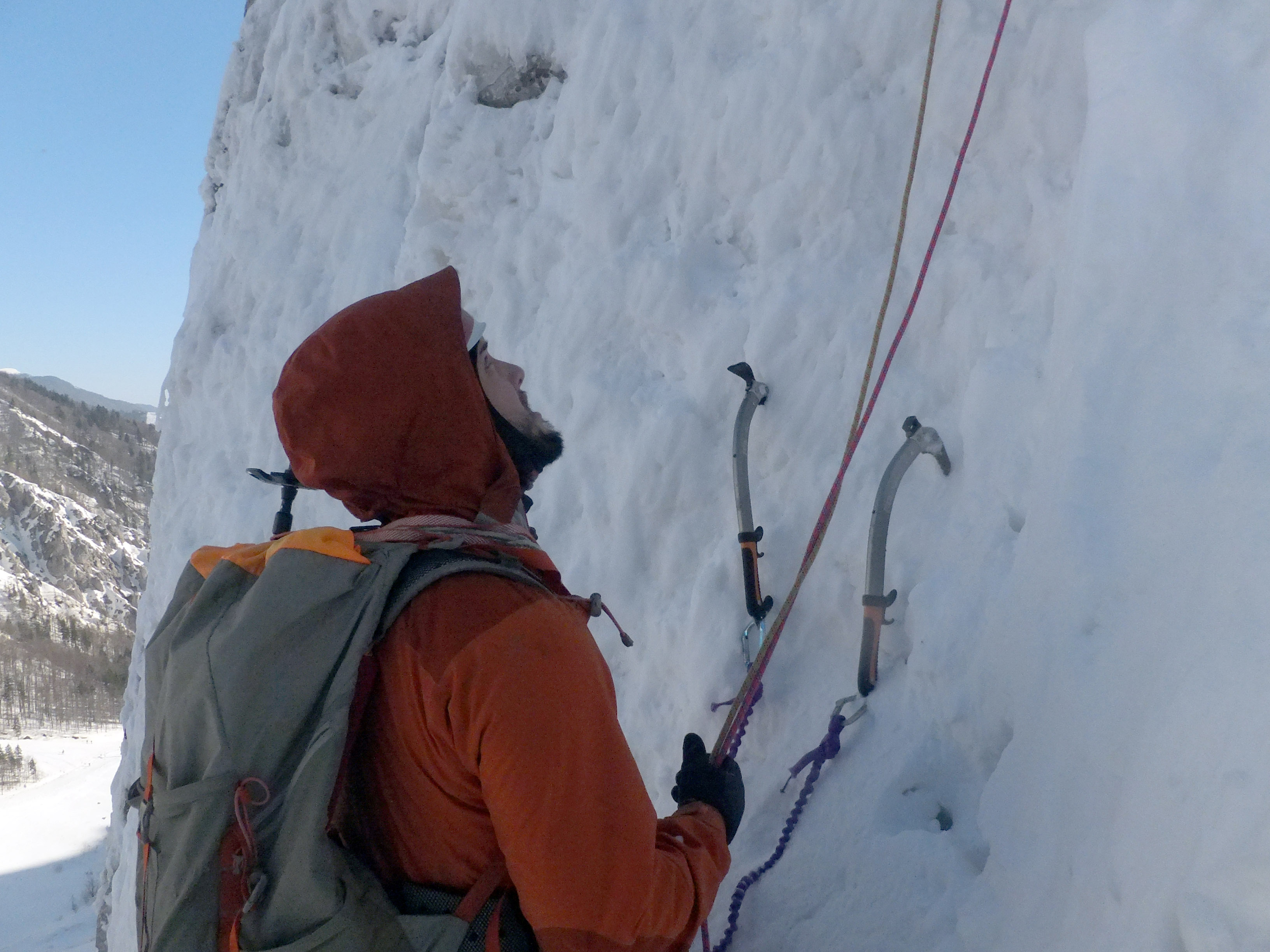 Siječanj 2012. Sinji slap i Nemška smer u Dolgom hrptu, Jezersko: Krešimir Milas i Rene Lisac, naš prvi zajednički uspon. Izvještaj na AOŽ stranicama -